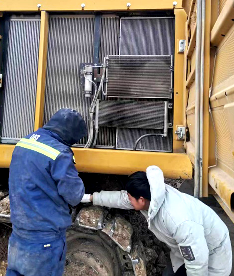 2023年2月初,客户的工程面临着工期紧,任务重且施工环境复杂等情况。“屋漏偏逢连夜雨”。一天,客户的一台Cat 349在施工时水箱被意外撞坏,需要更换。接到客户的紧急报修电话,710公海寰宇机械售后服务团队立即研判决策,考虑到路途遥远的因素,决定让服务人员携带配件,连夜坐车,历经两天两夜赶到现场,第一时间帮助客户解决了问题,没有耽误客户的工期进度。
