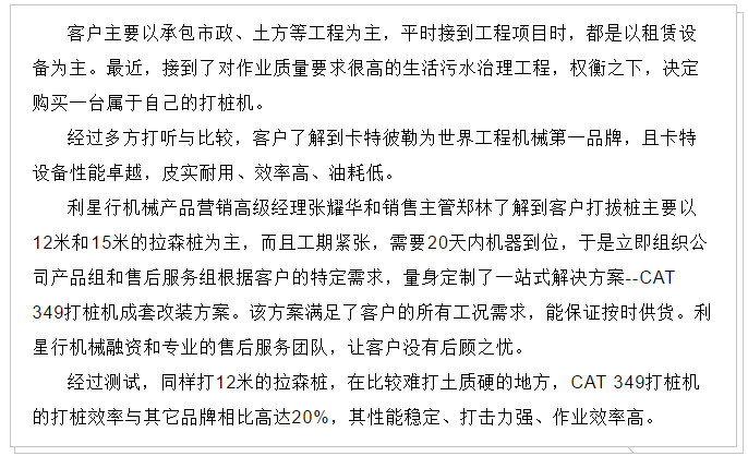 首台CAT 349 打桩机交付!更高!更快!更强! 一站式方案获高赞!